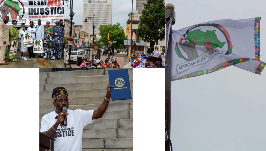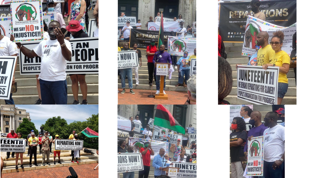 CONGRATULATIONS! Africa 400 Years.Org & African Diaspora For Justice will like to thank New Jersey Institute for Social Justice & People's Organization for Progress (Photos/Videos) for hosting this year historic JUNETEENTH 2021 commemoration rally. So also our sincere appreciation to all Federal, State, County and City officials, participating organizations, fans of the black race, and most especially members of the African Diaspora For Justice Group for your commitment to seeking justice and peace in our communities and beyond. The JUNETEENTH rally started at Lincoln Memorial (50 Market Street), Newark at 12Noon and ended at 3:00pm at Newark City Hall, Newark, New Jersey on Sat. JUNETEENTH 2021.